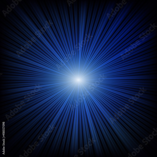 Blue color design with a burst. Colorful gradient luminous rays. Abstract blue radial lines.Stock vector illustration on dark background.