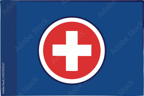flag, blue flag, symbol, red, white, blue, circle, cross, medicals, aid, neutrality, banner, signs, health care, first aid, international, organisation, hospital, doctor, nurse, emergency, rescue, protection, relief, humanitarian, assistance, support, service, icon, graphic, illustration, design, simple, clean, isolated, background, clip art, vector