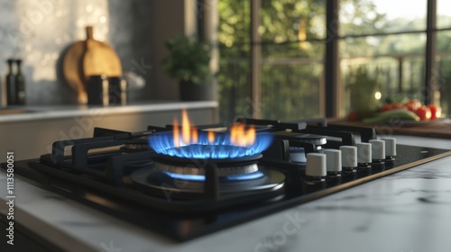 Blue flame gas stove in a modern kitchen, showcasing precision flame control and efficient heat distribution