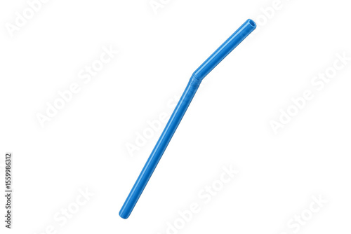 Blue flexible drinking straw isolated on transparent background