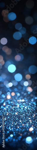 Blue glitter with blurred and bokeh background, shimmering particles in a soft focus gradient.