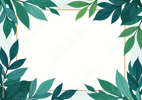 blue green leaves natural banner frame surrounded lush plant life template