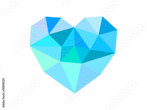 Blue heart isolated on white background. Geometric rumpled triangular low poly origami polygonal style gradient graphic vector illustration