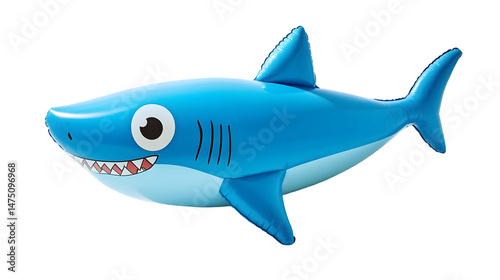 blue, inflatable, shark, toy, cartoon, smiling, white, belly, playful, fun, aquatic, sea, ocean, design, water, children, teeth, eye, fin, animal, swimming, cute, summer, party, buoyant, leisure, pool, air, cheerful, character