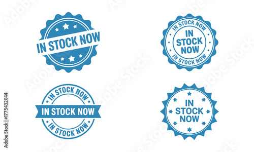 Blue instock logo set, business badges and labels for sales and marketing design use.