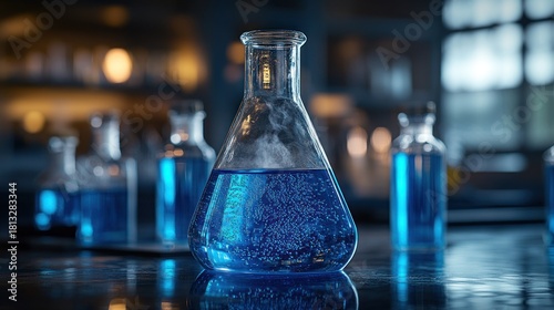 flask, liquid, blue, laboratory, science, experiment, chemical, glasses, boiling, reaction, chemistry, research, solution, bubble, transparent, laboratory, equipment, experimentation, researching, investigation, testing, analysis, mixture, distilled, vapour, containment, volumetric, precision, test, procedure, process, detail, observation, scientific, modern, technology, safety, study, researcher