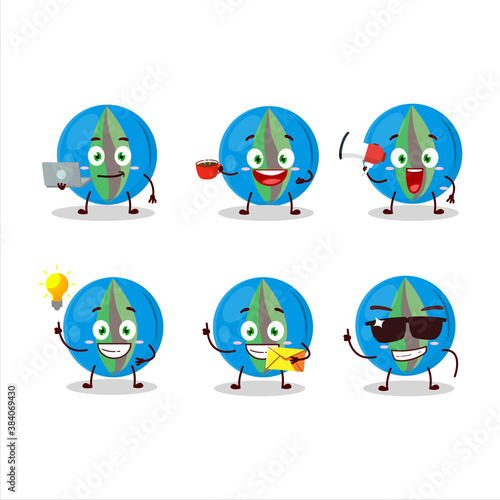 Blue marbles cartoon character with various types of business emoticons