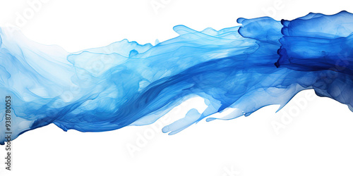 Blue paint brush strokes in watercolor on transparent background, png