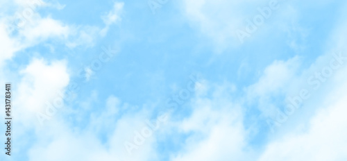 Blue pastel sky with white fluffy cloud. Cumulus clouds background. Cloudscape morning sky. The concepts of freedom of live, never give up and positive though energy.