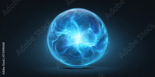 Blue plasma energy sphere glowing with electric cosmic power - AI generated