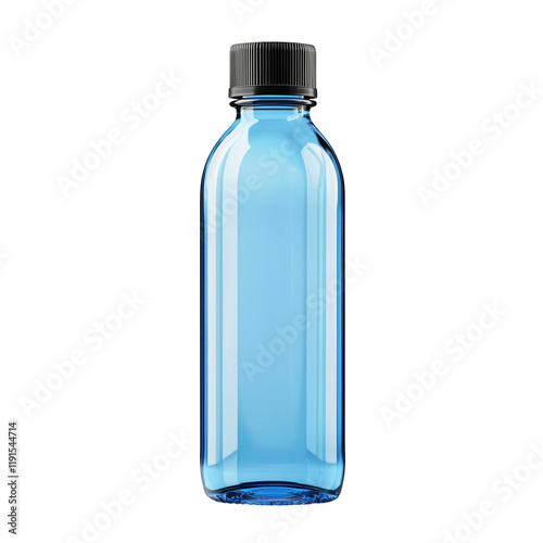 Blue Plastic Bottle with Black Lid on White Background Isolated on transparent background