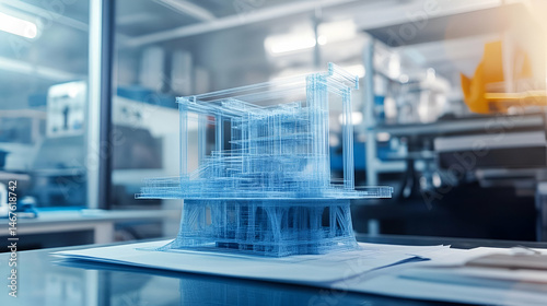 printing, additive, manufacturing, rapid, blue, resin, model, prototype, technology, innovation, industry, engineering, design, science, research, development, future, digital, fabrication, invention, creation, construction, architecture, abstract, modern, contemporary, transparent, complex, intricate, detailed, geometric, industrial, workspace, table, paper, background, white
