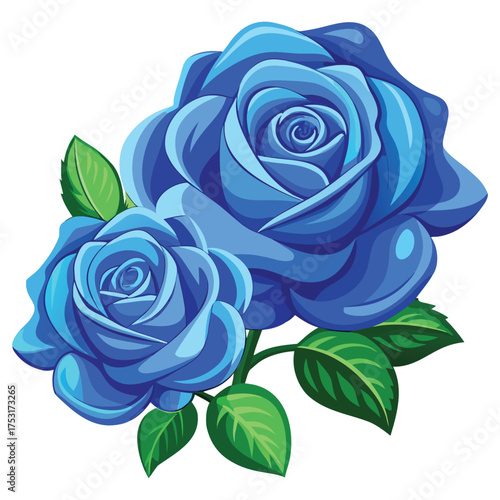 Blue Roses Illustration,Elegant Floral Design with Vibrant Petals and Green Leaves, Blue Roses vector,Blue Roses design, Blue Roses concept,Blue Roses cartoon,Blue Roses icon, Blue Roses template,