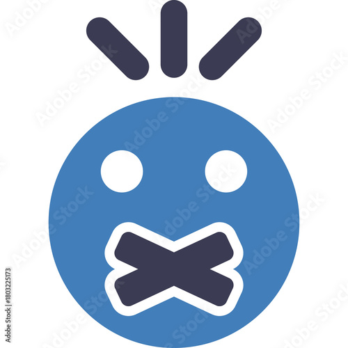 silence, quiet, mute, secret, anonymous, hidden, private, confidential, hush, taboo, censored, forbidden, restrained, expressionless, blank, surprised, shocked, unbelievable, shock, astonished, speechless, dumbfounded, open mouth, blue, dark blue, icon, symbol, graphic, vector, illustration