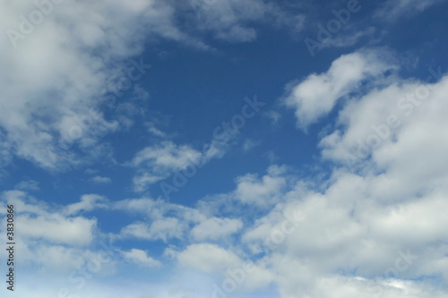 Blue sky and fluffy white clouds background.