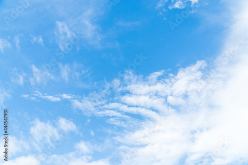 Blue sky with beautiful natural white clouds. Space for text. Background.