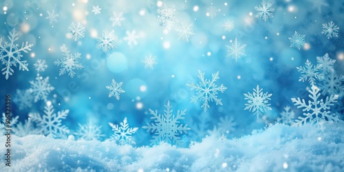Blue snow background with soft, fluffy snowflakes falling gently, winter, cold, icy, frozen, snowy, frosty, chill, serene
