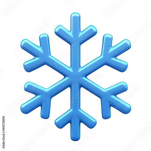 Blue snowflake icon with glossy finish, featuring symmetrical design and six branches, set against transparent background. image conveys sense of winter and cold
