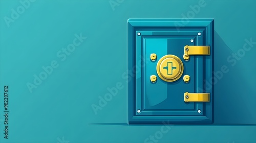 treasure, design element, wealth, minimal, turquoise, shadow, security, banking, protection, finance, money, gold, vault, simple, digital artwork, digital illustration, copy space, isolated, minimalism, illustration, light, cartoon, modern, abstract, clean, single object, blue, vector, graphic design, yellow, blank space, graphic art, background