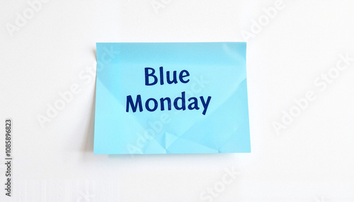 Blue sticky note with the text "Blue Monday" on a white background