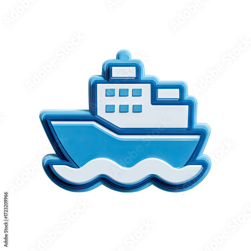 ship, vessel, maritime, ocean, cargo, transportation, blue, icon, symbol, graphic, design, flat, three-dimensional, illustration, logistic, shipping, nautical, water, wave, sea, voyage, travel, commerce, freight, navigation, port, harbor, cruise, transport, delivery, modern, simple, digital, iconography, technology, business, service