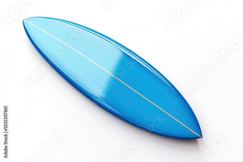 Blue surfboard studio shot, white background, summer vacation.