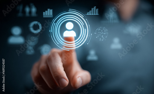 tech, technology, user, interface, person, finger, circle, chart, datum, science, avatar, icon, digital, futuristic, neon, blue, glow, screen, virtual, profile, abstract, background, template, presentation, wallpaper, design, graphic, poster, website, thumbnail, innovation, modern, smart, connection, networking, network, social, communication, business, corporate