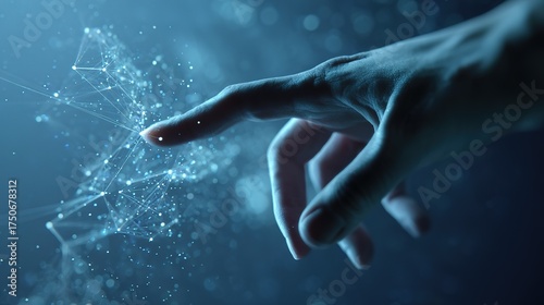 Blue Tech Hand Touching Network Particles: Interaction Scene