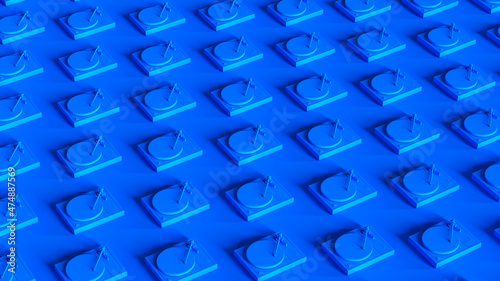 Blue Turntable Record Player Grid Pattern Vibrant Retro Classic Audio Technology Deck Network Blue Background 3d illustration
