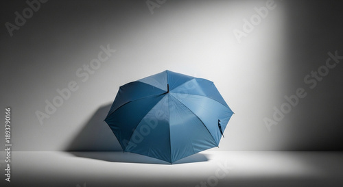 umbrella, blue, light, shadow, modern, indoor, design, object, minimalist, rain, protection, accessory, weather, shielding, round, fabric, curved, still life, decoration, stylish, contemporary, casual attire, functional, portable, practical, elegant, home, indoor, simplicity, fashion, solitude, geometric, urban, aesthetic, isolated, contrast, space, surface, storage, plain, basic, calmness, artistic, minimalistic, prop, craft, unique, uniform