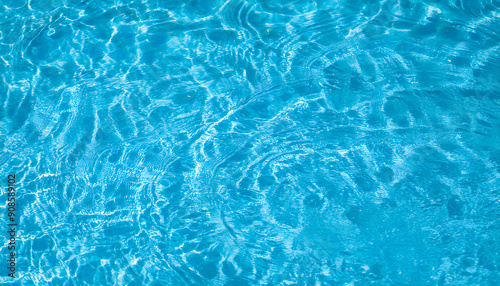 Blue water background. Close-up of the blue waters of the swimming pool from above.