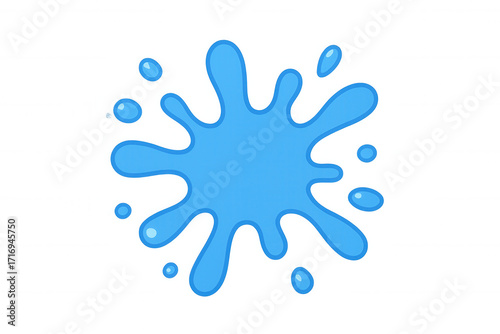 Blue water splash, liquid drop, paint splat, ink blot, or fluid blob creating a dynamic cartoon design element