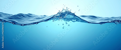 Blue Water Waves and Water Well Border: Create Awareness for World Water Day with Copy Space for Messages on Clean Water Access in Photo Stock Concept