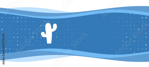 Blue wavy banner with a white cactus symbol on the left. On the background there are small white shapes, some are highlighted in red. There is an empty space for text on the right side
