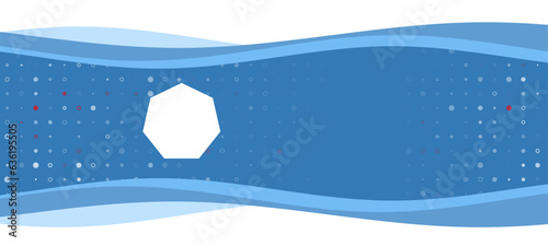 Blue wavy banner with a white heptagon symbol on the left. On the background there are small white shapes, some are highlighted in red. There is an empty space for text on the right side