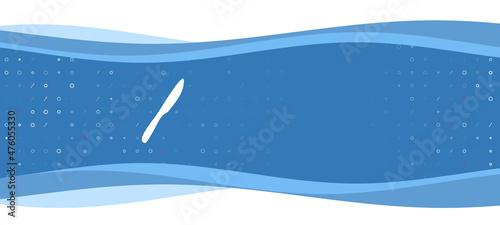 Blue wavy banner with a white kitchen knife symbol on the left. On the background there are small white shapes, some are highlighted in red. There is an empty space for text on the right side