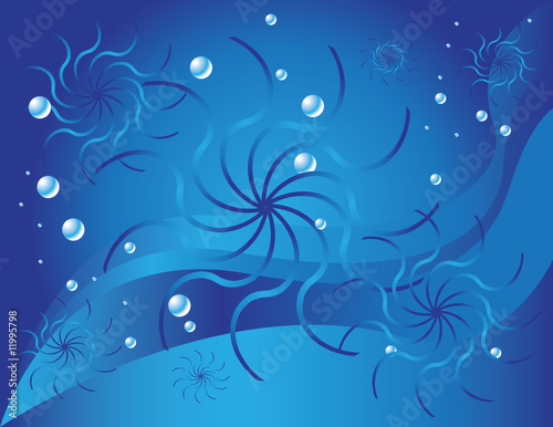vector, creature, abstract, illustration, undersea, underwater, background, bubble, octopus, spiral, design, bubbly, water, arm, blue