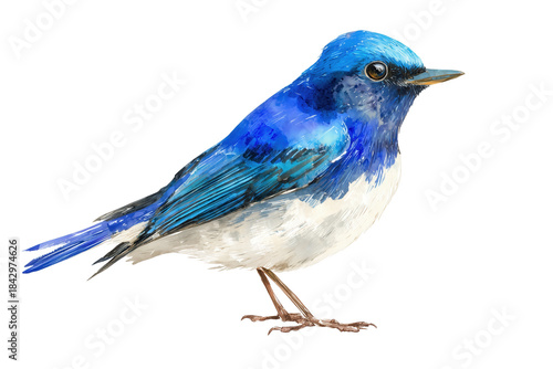 flycatcher, hand, drawn, watercolor, bird, illustration, art, artistic, nature, wildlife, avian, ornithology, animal, fauna, painting, drawing, blue, white, black, isolated, background, songbird, beautiful, vibrant, colourful, asian, design, element, print, small