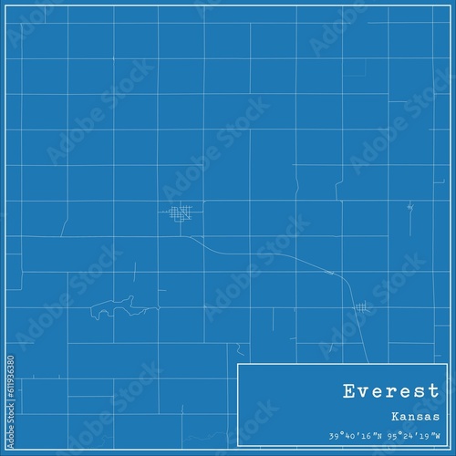 Blueprint US city map of Everest, Kansas.