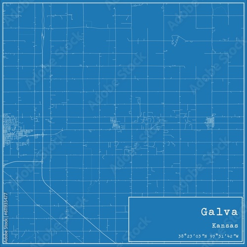 Blueprint US city map of Galva, Kansas.