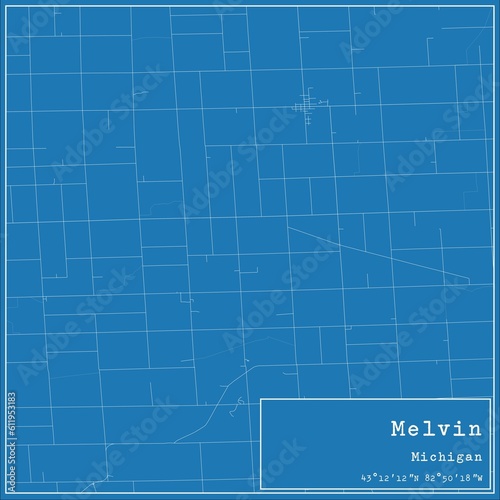 Blueprint US city map of Melvin, Michigan.