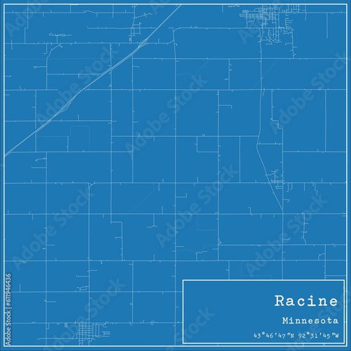 Blueprint US city map of Racine, Minnesota.