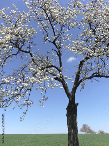 cherry tree, tree, countryside, log, spring, flower, fruit tree, cloud, plant, nature, twig, botany, field, spring, twig