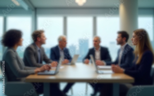 Blur office meeting blurred background with business people working group in boardroom discussion, executive seminar or professional training in enterprise. High quality