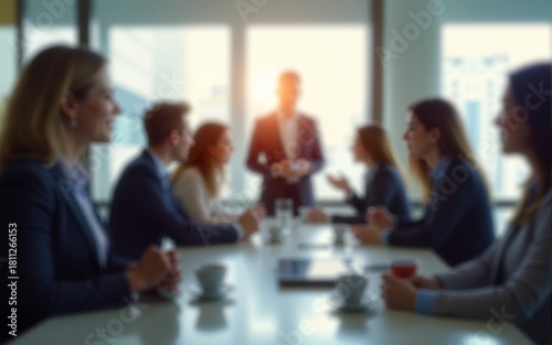 Blured image of businesspeople at coffee break at conference meeting. Business and entrepreneurship. High quality