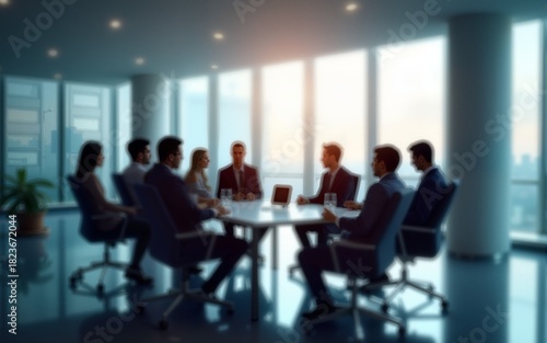 blurred business people meeting in modern office building conference room. generative AI. High quality