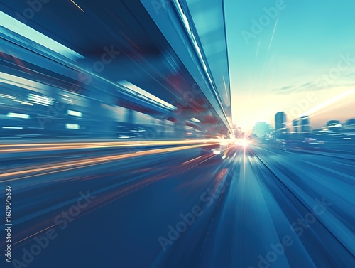 Blurred City Highway with Speeding Traffic at Sunrise. Perfect for Business and Promotional Posters.