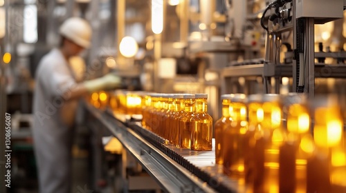 factory, assembly, line, machinery, production, process, manufacturing, industrial, technology, men at work, equipment, bottle, conveyer, automation, efficiency, blurred, background, tool, liquid, glasses, industry, design, system, workspace, operation, output, quality, safety, environment, modern, oneness, flow, task, team, labor, plant, scale, assembly line, work, setting, ingredient, beverage, supply, method, action, detail, scene, rythm, workflow