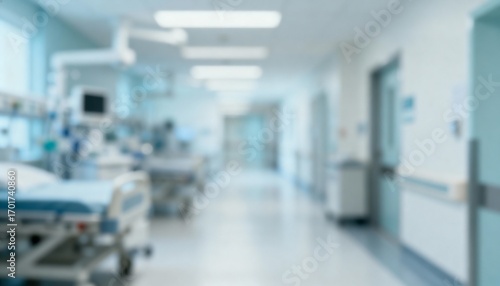 Blurred Hospital Interior with Beds and Medical Equipment for Healthcare Backgrounds and Visual Communication