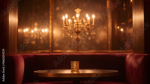 blurred image of a luxury speakeasy bar interior with glowing amber candelabras